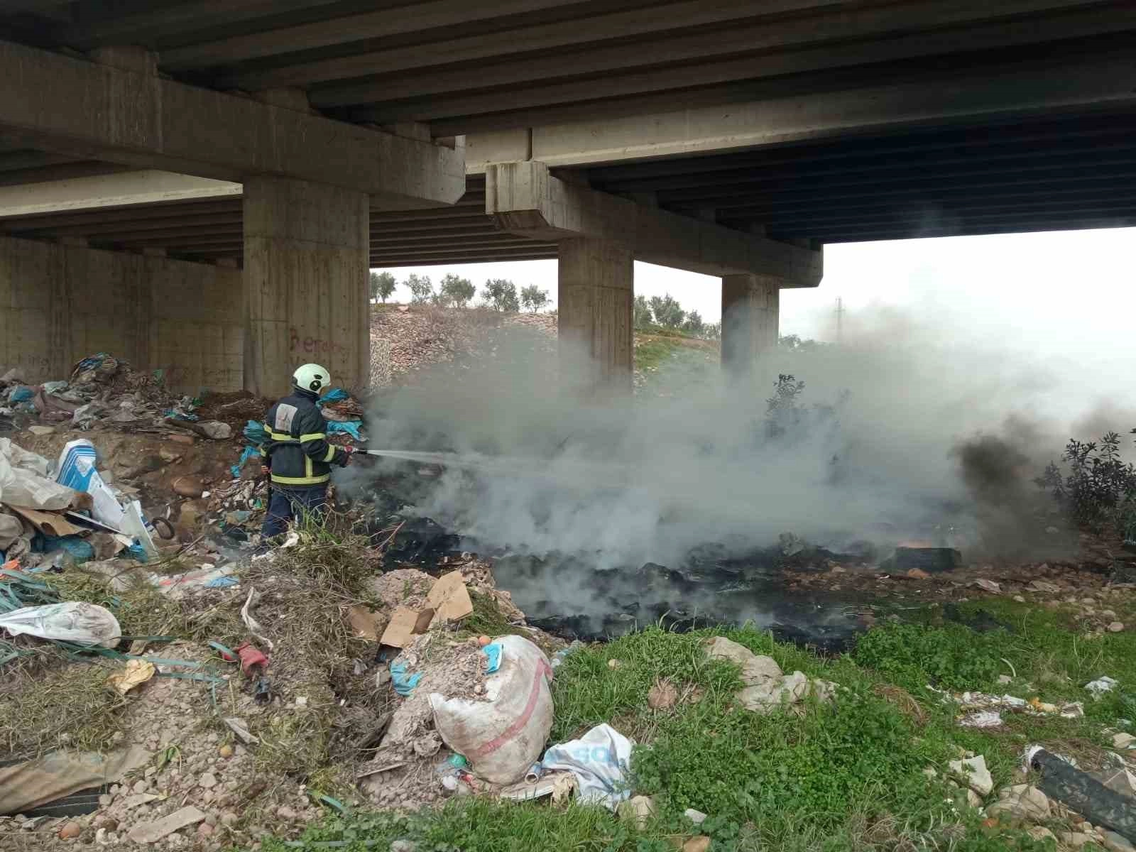 Yangın, Hassa ilçesi Aktepe Mahallesi'nde meydana geldi. Mahallenin anayol üzerinde yer alan köprünün altında atıl durumda olan araç lastikleri, bilinmeyen bir nedenden dolayı yanmaya başladı. Lastiklerin meydana getirdiği yangını gören vatandaşlar durumu 112 Acil Çağrı Merkezi'ne bildirdi. Olay yerine itfaiye ekipleri sevk edildi. Kısa sürede ihbar yerine gelen itfaiye ekipleri, lastiklerden çıkan yangına müdahale ederek söndürdü.