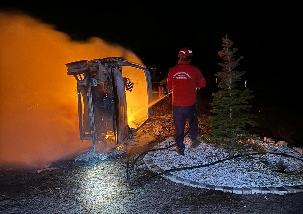 Balıkesir'in Havran ilçesinde kaza sonrası sürücü yanan araçtan çıkmayı başararak, hayatını kıl payı kurtardı.