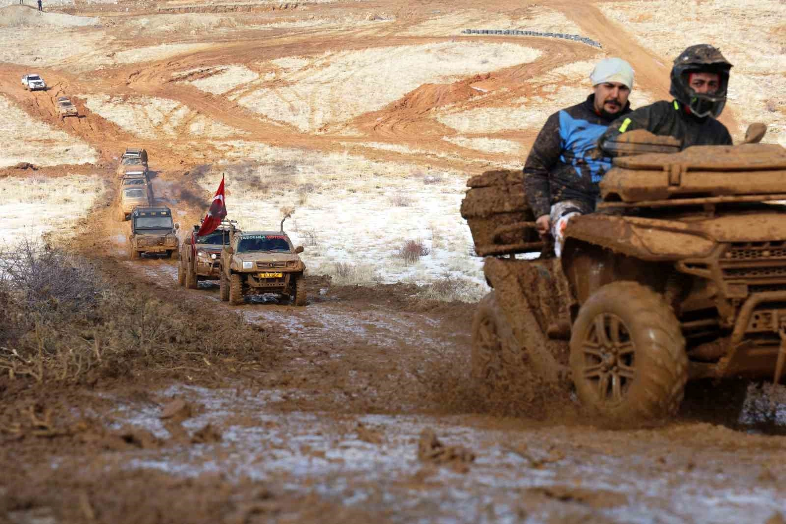 Elazığ'ın Sivrice ilçesinde bulunan Hazarbaba Dağı'nda Off-Road rüzgarı yaşanırken araçların çamur içerisinde engebeli arazide ilerlemesi renkli görüntülere sahne oldu.