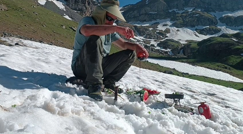 Erzurum'un İspir ilçesinde yaşayan Bülent Erkan, Haziran ayında kar üzerinde yemek keyfi yaşadı.
