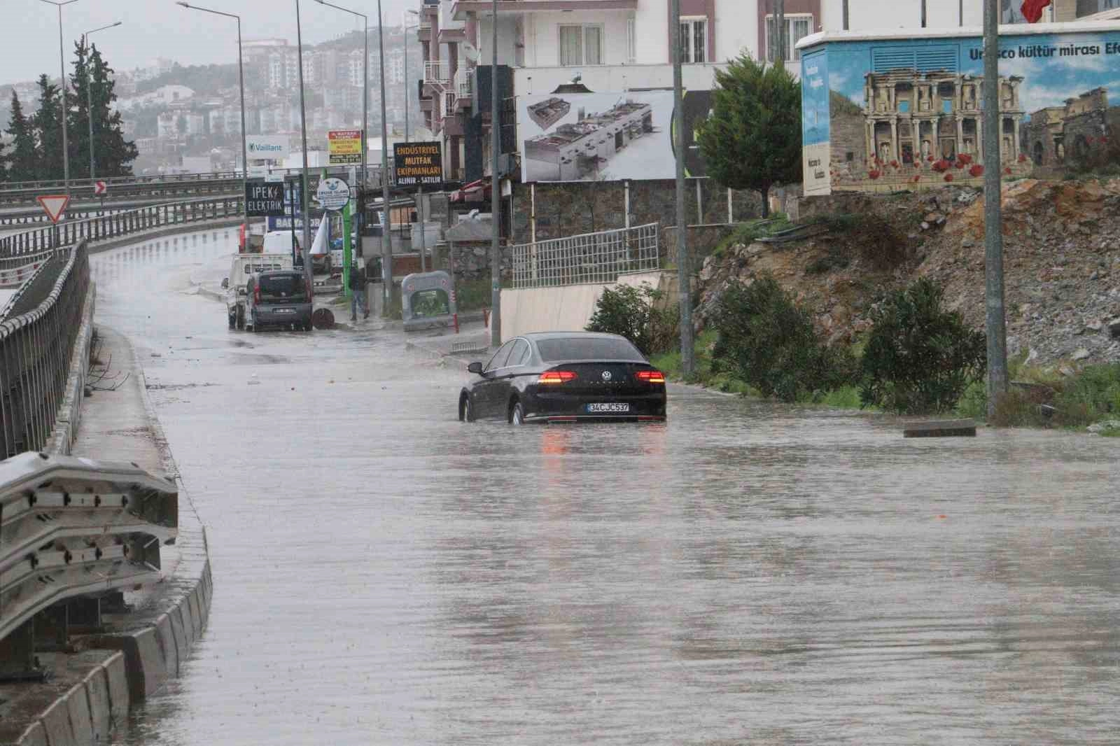 Kuşadası'nda öğleden sonra başlayan ve zaman zaman etkisini artıran sağanak, günlük yaşamı olumsuz etkiledi. Yağış nedeniyle Söke-Kuşadası karayolu trafiğinde aksamalar oluştu. Biriken yağmur suları Karayolları 2'nci Bölge Müdürlüğü'nün yetki ve sorumluluğunda olan Otogar Kavşağı ile Kuşadası Ticaret Odası (KUTO) ve Kuşadası Emniyet Müdürlüğü önündeki yolların bazı bölümlerini göle çevirdi. Oluşan su birikintileri nedeniyle araçlar yolda mahsur kaldı. Suya gömülen araçlar çekici yardımıyla kurtarıldı. Yaşanan olumsuzluklara Aydın Büyükşehir Belediyesi ile Kuşadası Belediyesi ekipleri müdahale etti. Her sağanakta aynı problemin yaşandığına dikkat çeken sürücüler, Karayolları 2'nci Bölge Müdürlüğü'nü göreve çağırdı.