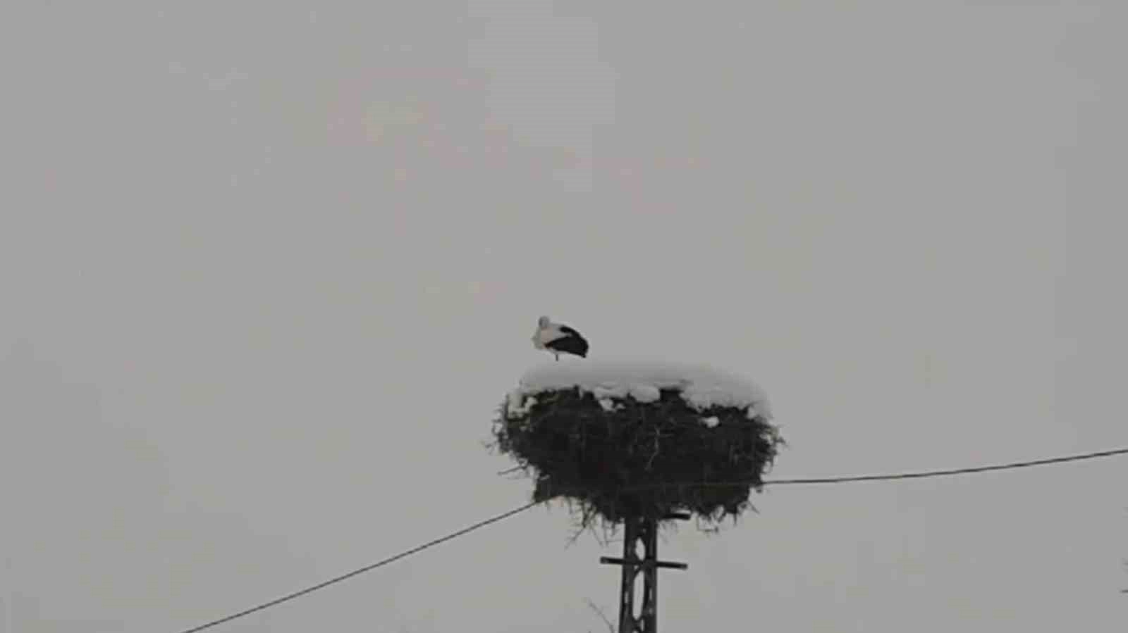Leyleğin yıllardan beri aynı yerde yuvası olduğunu belirten köy sakinleri, "Her yıl havaların soğumasıyla göç eden leylek bu yıl kaldı" dediler.