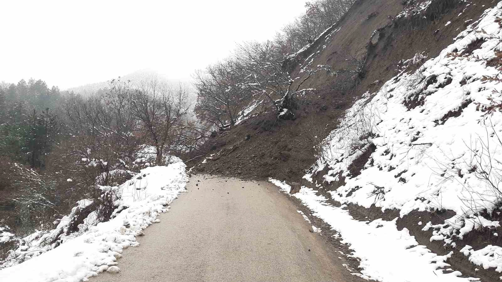 Karabük'te yağışların ardından meydana gelen heyelan nedeniyle köy yolu ulaşıma kapandı.