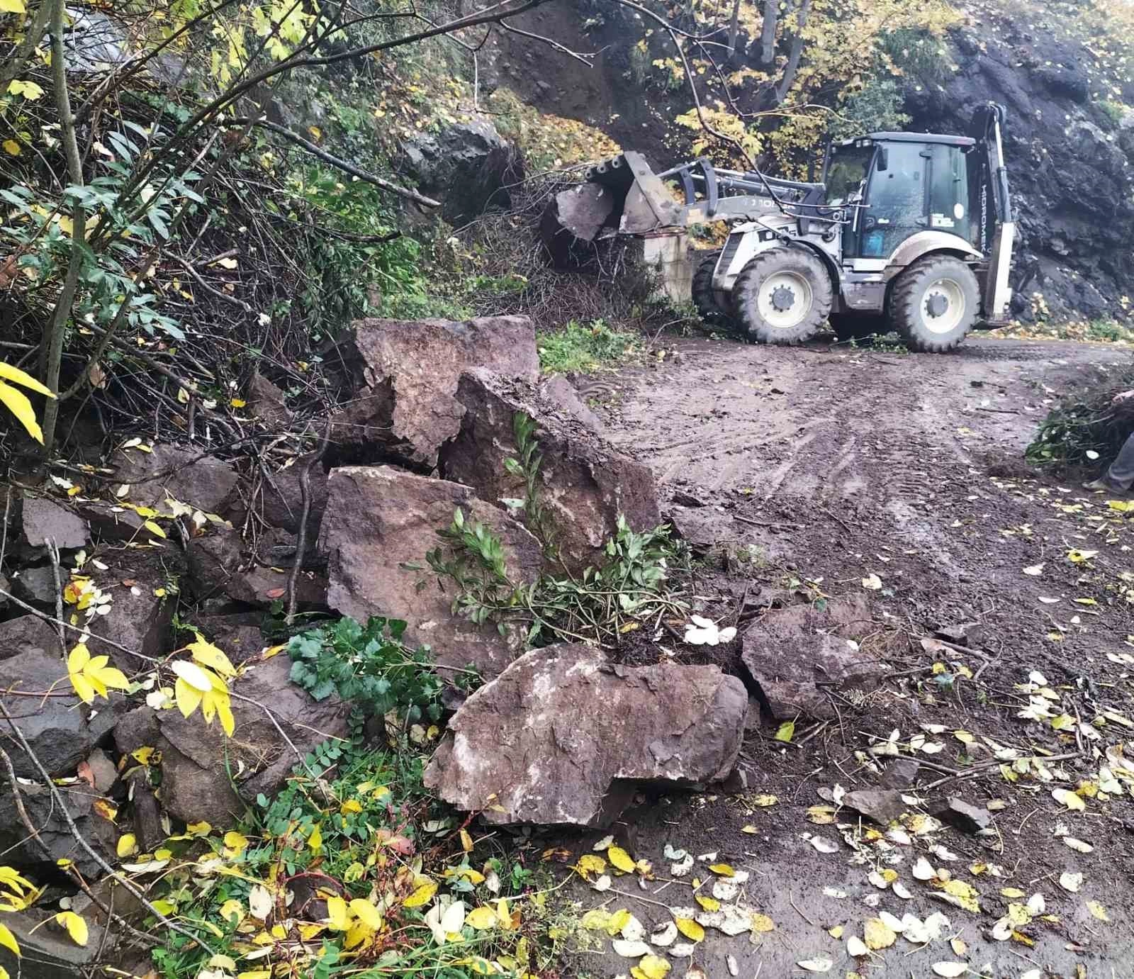 Düzce'de yağışlarla birlikte bazı köy yollarında heyelan meydana geldi. Gölyaka İlçe Özel İdaresi Müdürlüğü ekipleri, Hamamüstü köyünde moloz ve taşların yola akması sebebiyle oluşan güvenlik ve trafik sorununu hızlı bir şekilde aksiyon alarak, ortadan kaldırarak yolu tekrar trafik kullanımına uygun hale getirdi.