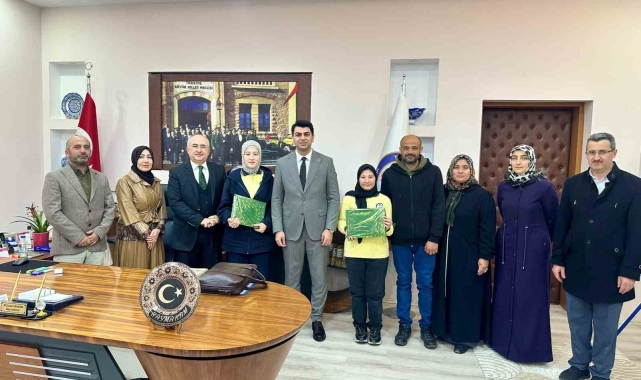 İlçe Milli Eğitim Müdürü Salim Karaboğa, Milli Eğitim Şube Müdürü Şeyda Bulut, Şehitler Ortaokulu Müdürü Ali Osman Kılıç ve başarılı öğrenciler ile aileleri Kaymakam Muhammet Samet Bahar'ı makamında ziyaret etti. Başarılarından dolayı her iki öğrenciyi tebrik eden Kaymakam Bahar, öğrencilere çeşitli hediyeler verdi.