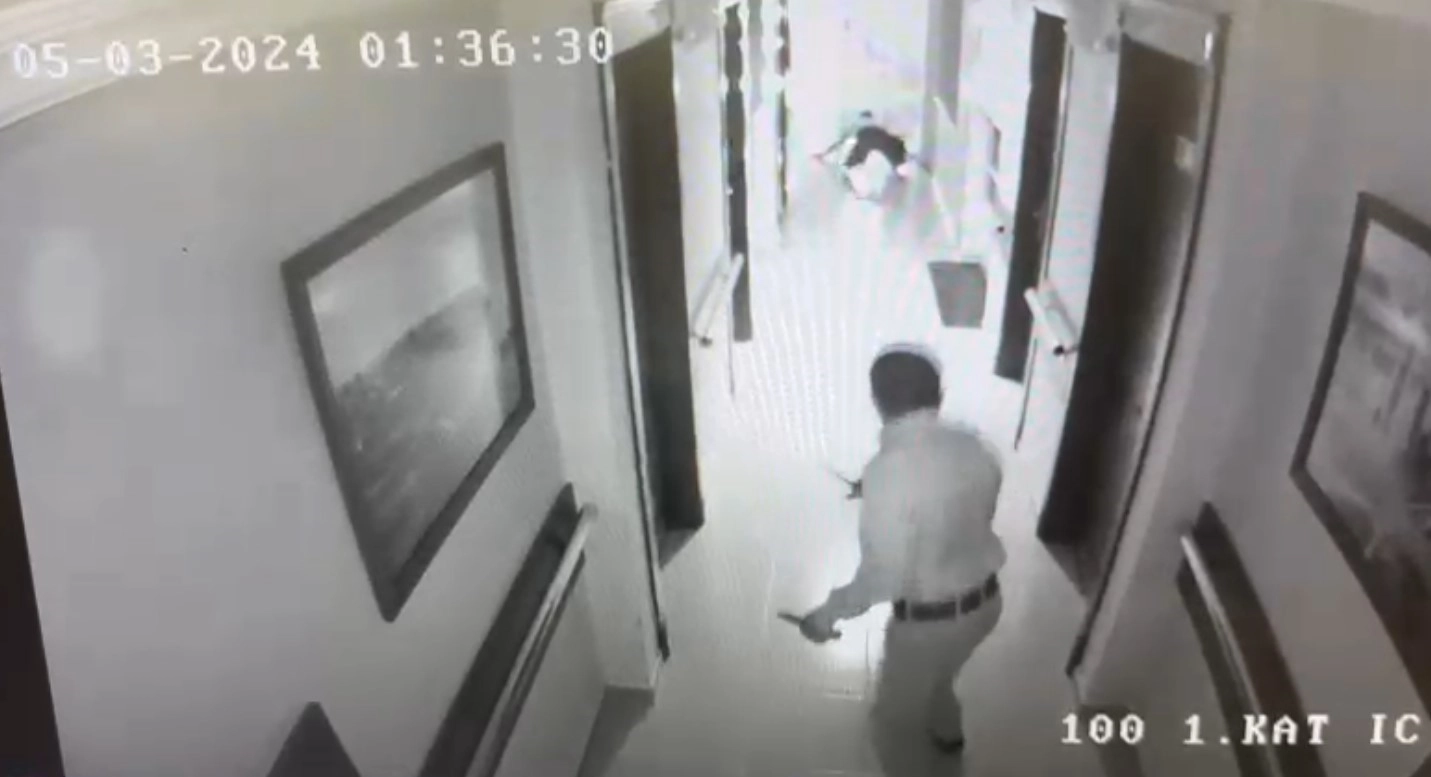 Döşemealtı ilçesindeki Antalya Büyükşehir Belediyesi Halil Akyüz Huzurevi'nde dün gece 2 kişiyi öldürüp 1 kişiyi yaralayan ve tutuklanarak cezaevine gönderilen İzzettin S.'nin (65), huzurevinde elinde bıçakla olan güvenlik kamera görüntüleri ortaya çıktı. Görüntülerde iki elinde bıçak bulunan zanlının koridorda huzurevinin güvenlik görevlisiyle karşı karşıya gelmesi, görevlinin yere düşmesiyle İzzettin S.'nin peşinden gitmesi yer aldı. Görüntülerin devamında güvenlik görevlisi olay yerinden kaçarken, İzzettin S.'nin de merdivenlerden inip huzurevinden kaçması güvenlik kameralarına saniye saniye yansıdı.
