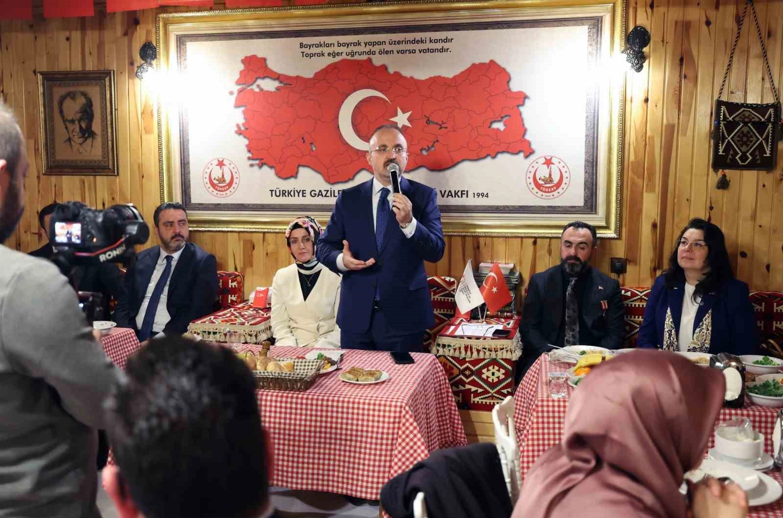 Turan, 40 yıldan beri ülkede terörün olmaması gerektiğini ifade ederek, "40 yıldan beri terör, sadece şehitlerimizin, gazilerimizin hakkı için değil, gelecek nesiller içinde, yatırımlar içinde, büyüme içinde bir problemdir, sorundur. Sizler en kıymetlilerinizi verdiniz, kolay mı can vermek? Bir başka ailemiz bir daha bu acıyı yaşamasın istiyoruz. Bir daha bu ülkede bir terör faaliyeti olmasın, tasfiyesi olsun kapansın gitsin ve bir insanımızın saçının teline zarar gelmesin istiyoruz. Bu masada ki şehit ailelerimiz, gazilerimiz İmralı'ya nasıl bakıyorsa, bende öyle bakıyorum. Bu masada ki ailelerimiz teröriste, bebek katiline, haine nasıl bakıyorsa biz de öyle bakıyoruz. Hiçbir endişemiz yok ama ömrümüz ağlayarak, üzülerek, sitem ederek geçmemeli. Devlet duygularıyla değil, aklıyla hareket eder" diye konuştu.