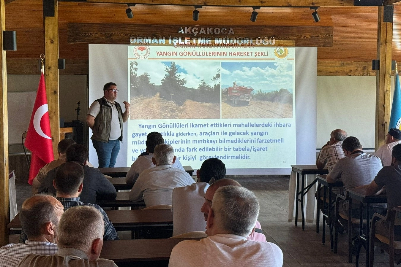 İşletme Şefi İlhan Yılmaz tarafından orman yangınları önleme faaliyetlerinde Akçakoca Orman İşletme Müdürlüğü Eğitim Merkezinde verilen eğitime ilçe sınırlarında görev yapan 42 imam katıldı. Eğitimde yangın öncesi, yangın anı ve sonrasında yapılacaklar ile orman yangınlarına müdahalede iş sağlığı ve güvenliği konularında bilgiler verildi.