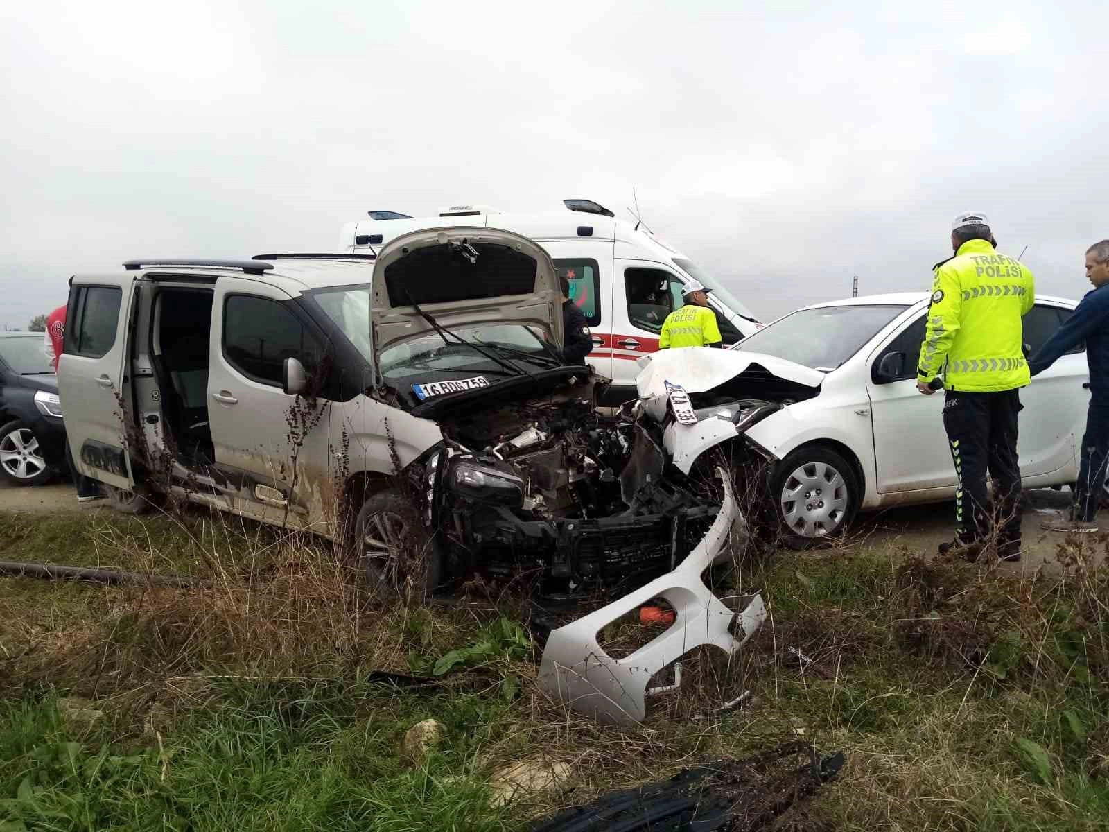 Bursa'nın İnegöl ilçesinde, hafif ticari araç ile otomobilin kafa kafaya çarpıştığı kazada, 2'si çocuk 5 kişi yaralandı.