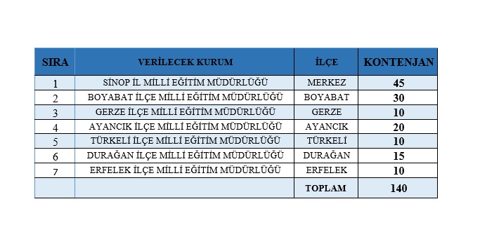 Sinop Çalışma ve İş Kurumu İl Müdürlüğü ile Sinop İl Milli Eğitim Müdürlüğü iş birliği çerçevesinde il ve ilçe müdürlüklerinde kamusal hizmetlerin desteklenmesi (temizlik, bakım onarım vs.) amacıyla toplam 140 kişilik toplum yararına program açılacağı duyuruldu.