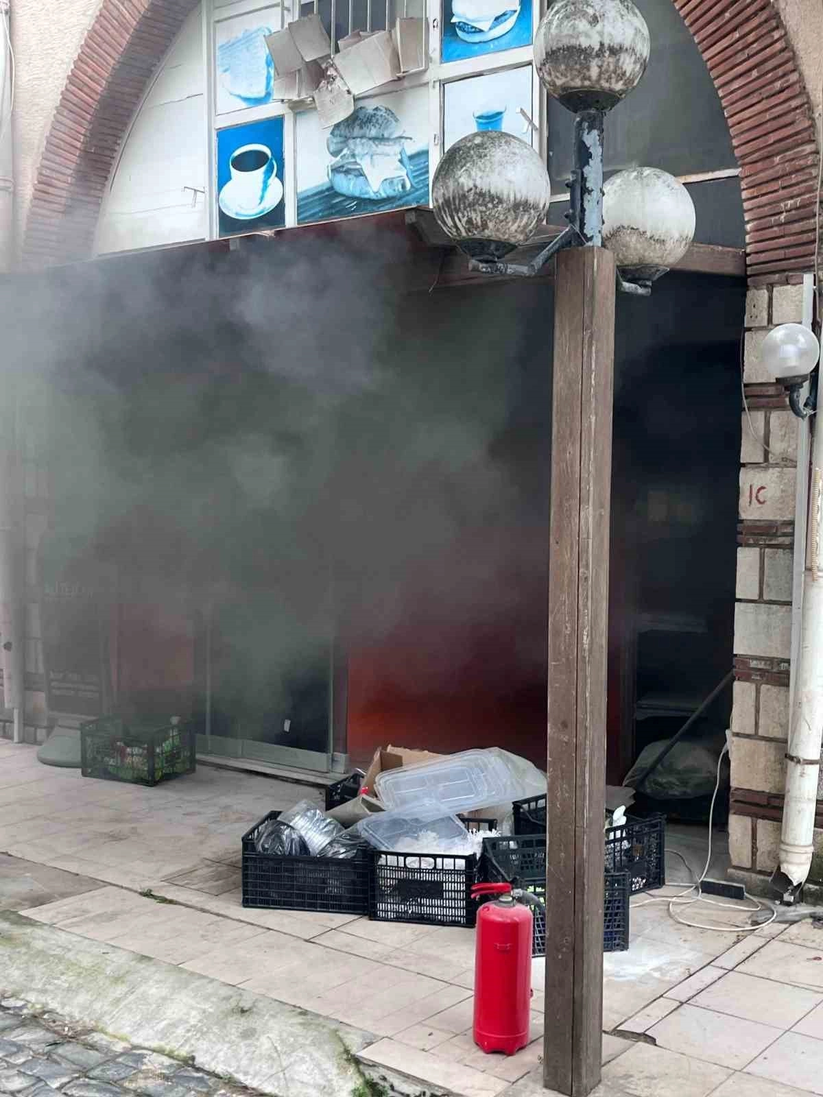 İş yerinde maddi hasarın meydana geldiği yangının çıkış nedenini belirlemek için çalışma başlatıldı.