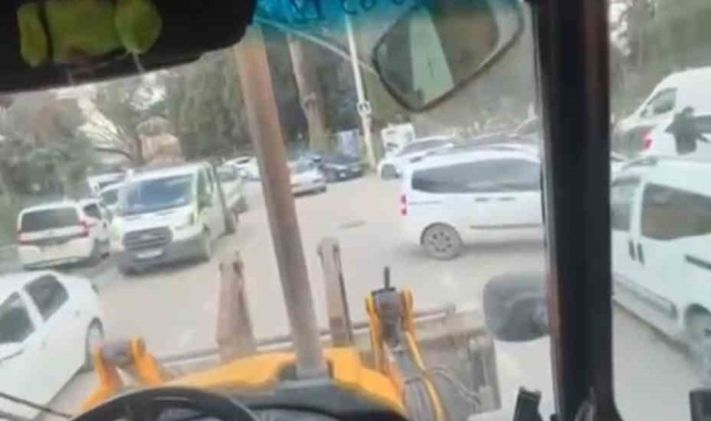 Bursa'da iddiaya göre ehliyeti olmayan bir genç, sokak aralarında iş makinesi sürdü. Bununla da yetinmeyen genç, tehlikeli anları kayda aldı.