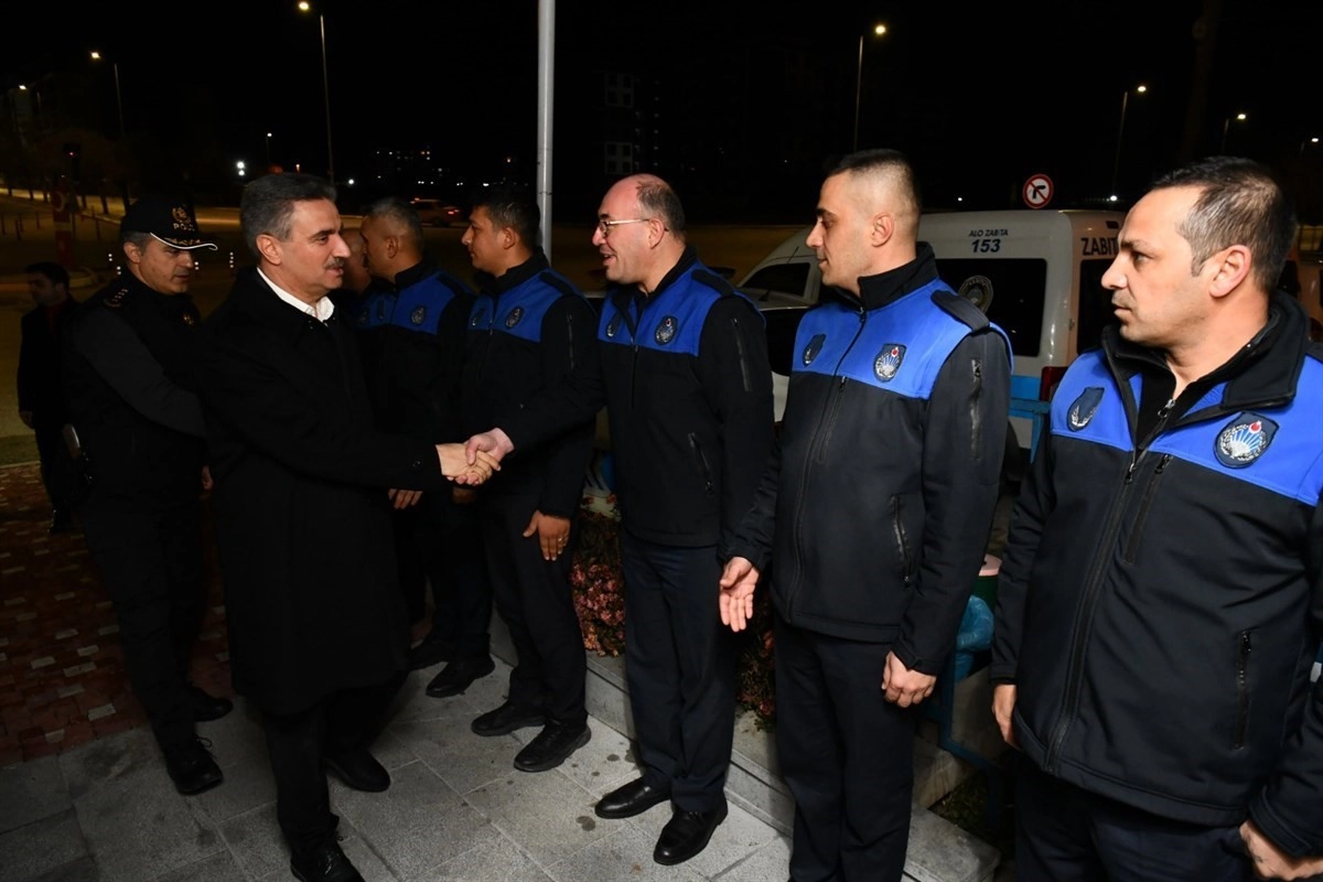 Vali Aydın Baruş, 2023 yılının son saatlerinde Isparta'nın huzuru, güvenliği ve sağlığı için mesai mefhumu gözetmeden görev yapan kamu çalışanlarını ziyaret ederek görevlerinde kolaylıklar diledi. Sırasıyla Halıkent Polis Merkezi, Sav Polis Uygulama Noktası, İl Jandarma Komutanlığı, Eğirdir Yolu Jandarma Uygulama Noktası, 112 Acil Çağrı Merkezi, Zabıta Müdürlüğü ve İtfaiye Müdürlüğü'nü ziyaret eden Vali Baruş, görevlilere çalışmalarında başarılar dileyerek görevlilerin yeni yılını kutladı. Kurum müdürlerinden yeni yıl gecesi için alınan tedbirler hakkında bilgi de alan Vali Baruş, vatandaşın huzur ve güvenliği için 24 saat görev başında olan çalışanlara teşekkür etti.