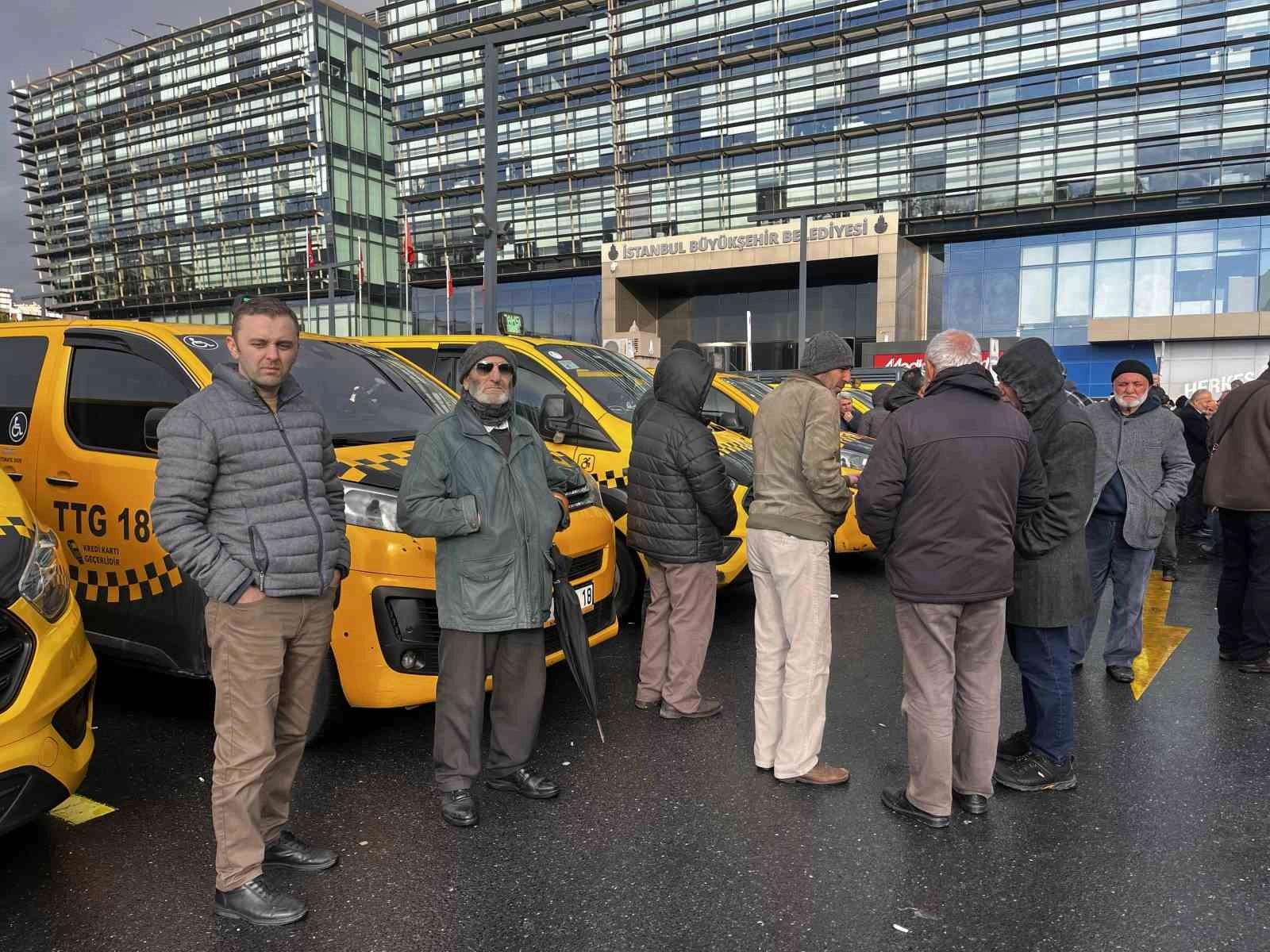 UKOME toplantısında minibüs ve taksi dolmuştan 8+1 taksiye dönüştürülen araç sahipleri, mağdur olduklarını dile getirerek İstanbul Büyükşehir Belediyesi binası önünde toplanarak eylem yaptı.