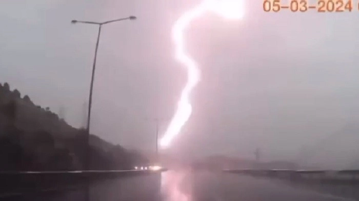 Meteoroloji Genel Müdürlüğü'nün İzmir için sağanak yağış uyarısı yapmasının ardından sabah saatlerinde kentte sağanak etkili oldu. Yağmur beraberinde gök gürültüsü ve şimşekleri de peşinde getirirken, İzmir Çevreyolu'nda seyir halinde olan bir aracın kamerasına yıldırım düşme anları yansıdı.