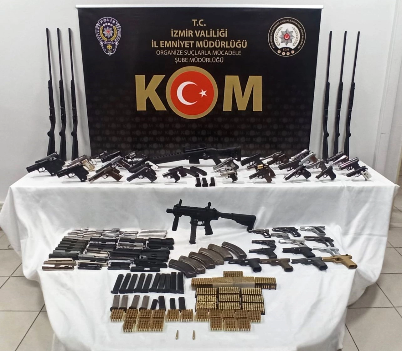 İzmir'de Organize Suçlarla Mücadele Şube Müdürlüğü ekipleri bir grubun yasa dışı silah ticareti yaptığı ve ruhsatsız atölyede silah ürettiği yönünde aldığı bilgi üzerine, Karabağlar ve Buca ilçelerinde 3 şüpheliye ait 6 farklı adreste arama gerçekleştirdi.