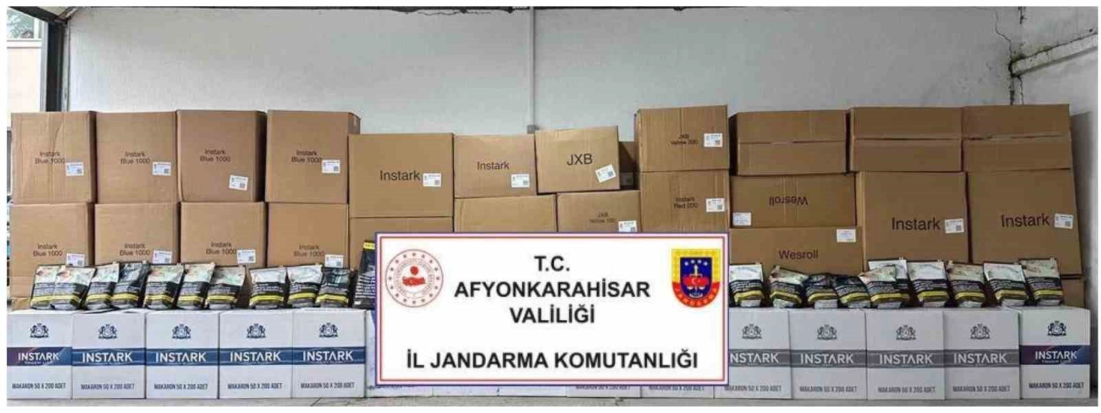 Afyonkarahisar'da jandarma ekipleri durdurdukları bir araçta yaptıkları aramada 150 bin adet boş makaron ve 793 kilogram kaçak tütün ele geçirdi.