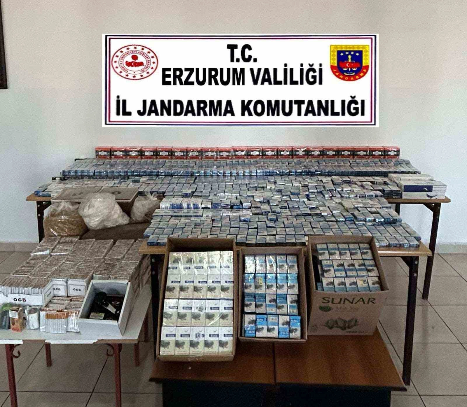 Edinilen bilgiye göre, Jandarma ekiplerinin Horasan ilçesinde yapılan arama faaliyeti sonucu, 3 bin 500 paket kaçak sigara, 5 bin adet içi tütünle doldurulmuş makaron, 3 adet elektronik sigara, 25 kg. kaçak tütün, 20 kg. kaçak çay, 1 adet sigara dolum aleti ele geçirildi.