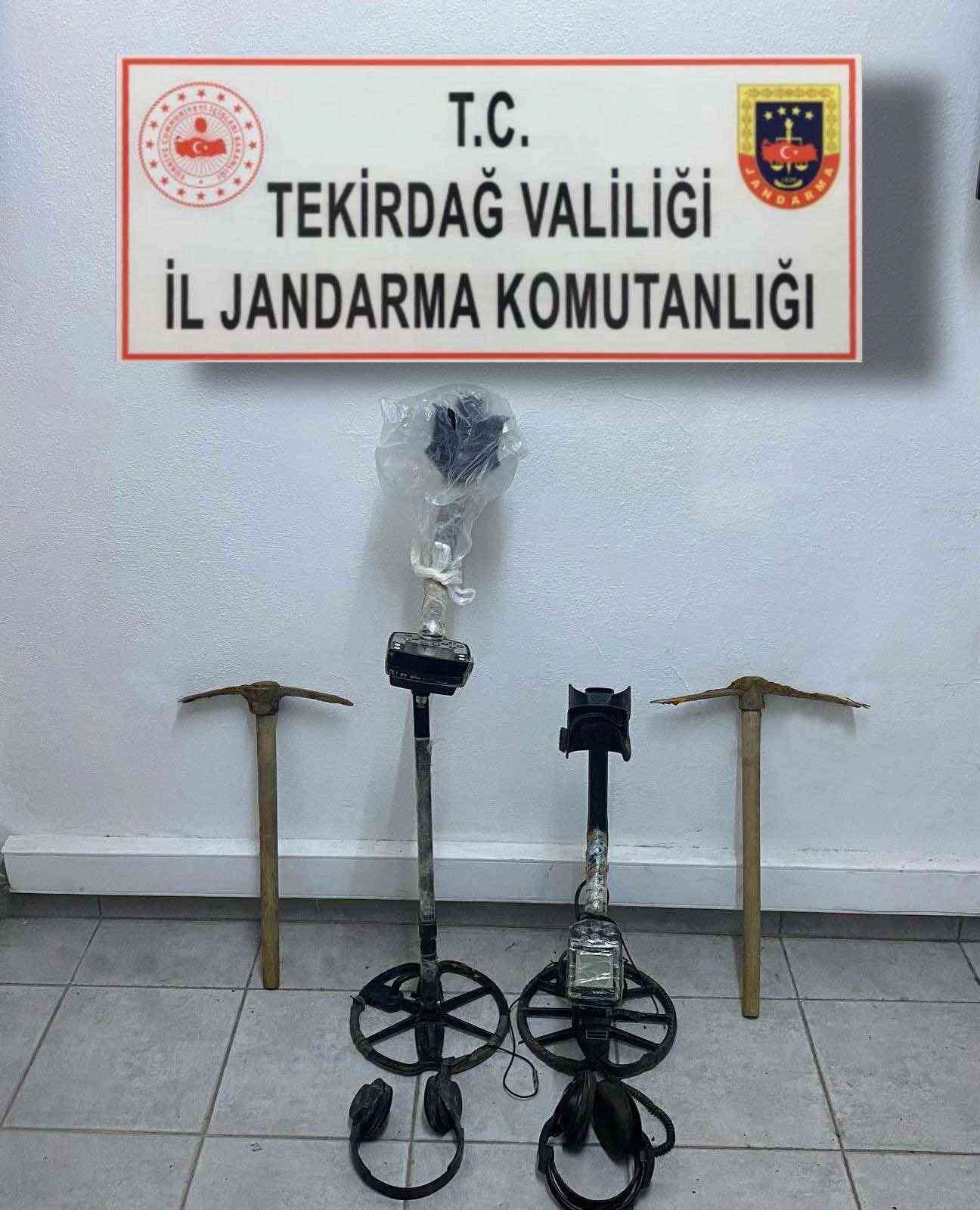 Tekirdağ İl Jandarma Komutanlığınca Süleymanpaşa Yukarıkılıçlı Mahallesi'nde A.K. ve B.M. isimli şahısların ellerinde dedektörler ile define aradıkları tespit edildi. Şahıslar suçüstü yakalanarak haklarında işlem başlatıldı.