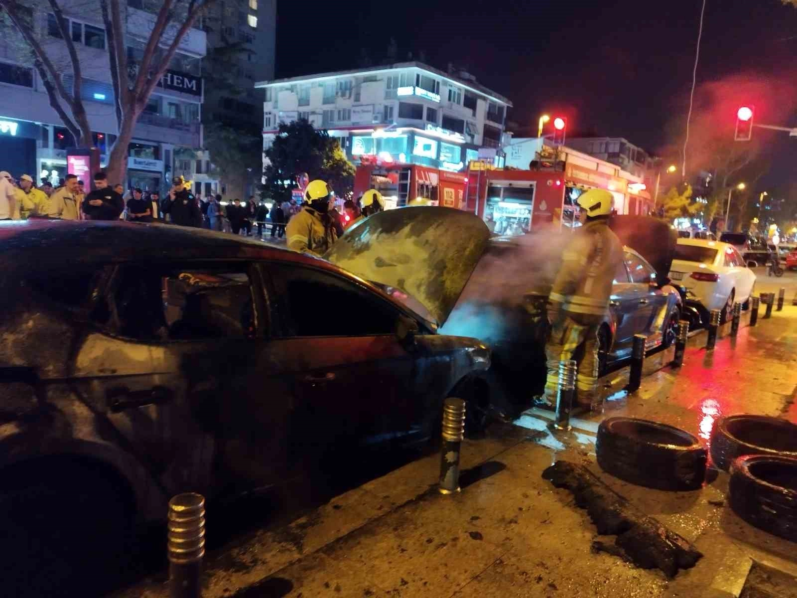 İstanbul'da park halindeki 2 araç alevlere teslim olurken, otomobiller kullanılamaz hale geldi.