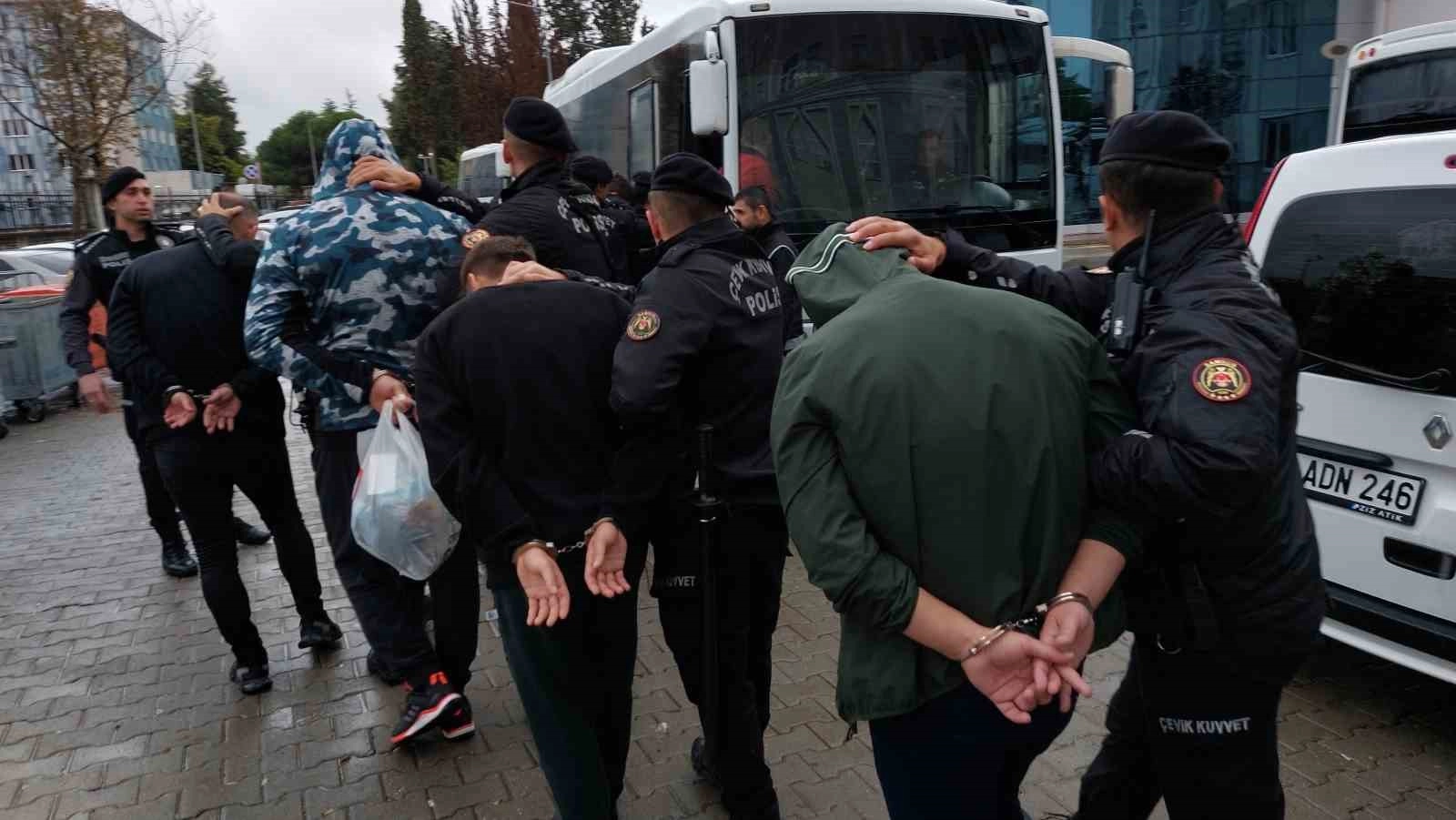 KOM Şube Müdürlüğü ekipleri tarafından gözaltına alınan 35 kişiden 7'si emniyetteki işlemlerinin ardından serbest bırakıldı. Sorguları tamamlanan aralarında suç örgütünün lideri olduğu ileri sürülen E A.'nın da bulunduğu 28 kişi bu sabah Samsun Adliyesine sevk edildi.