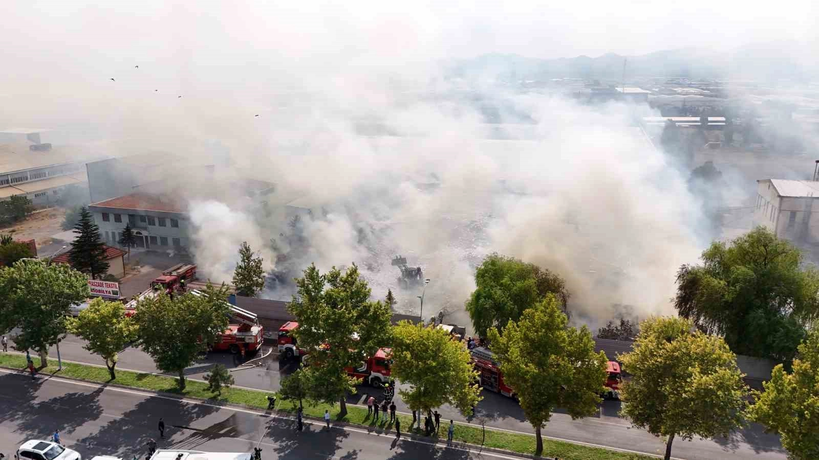 Öte yandan, dumanların yükseldiği yangın ve ekipleri yangını söndürme çalışmaları da havadan görüntülendi. Ekiplerin çalışması sürüyor.