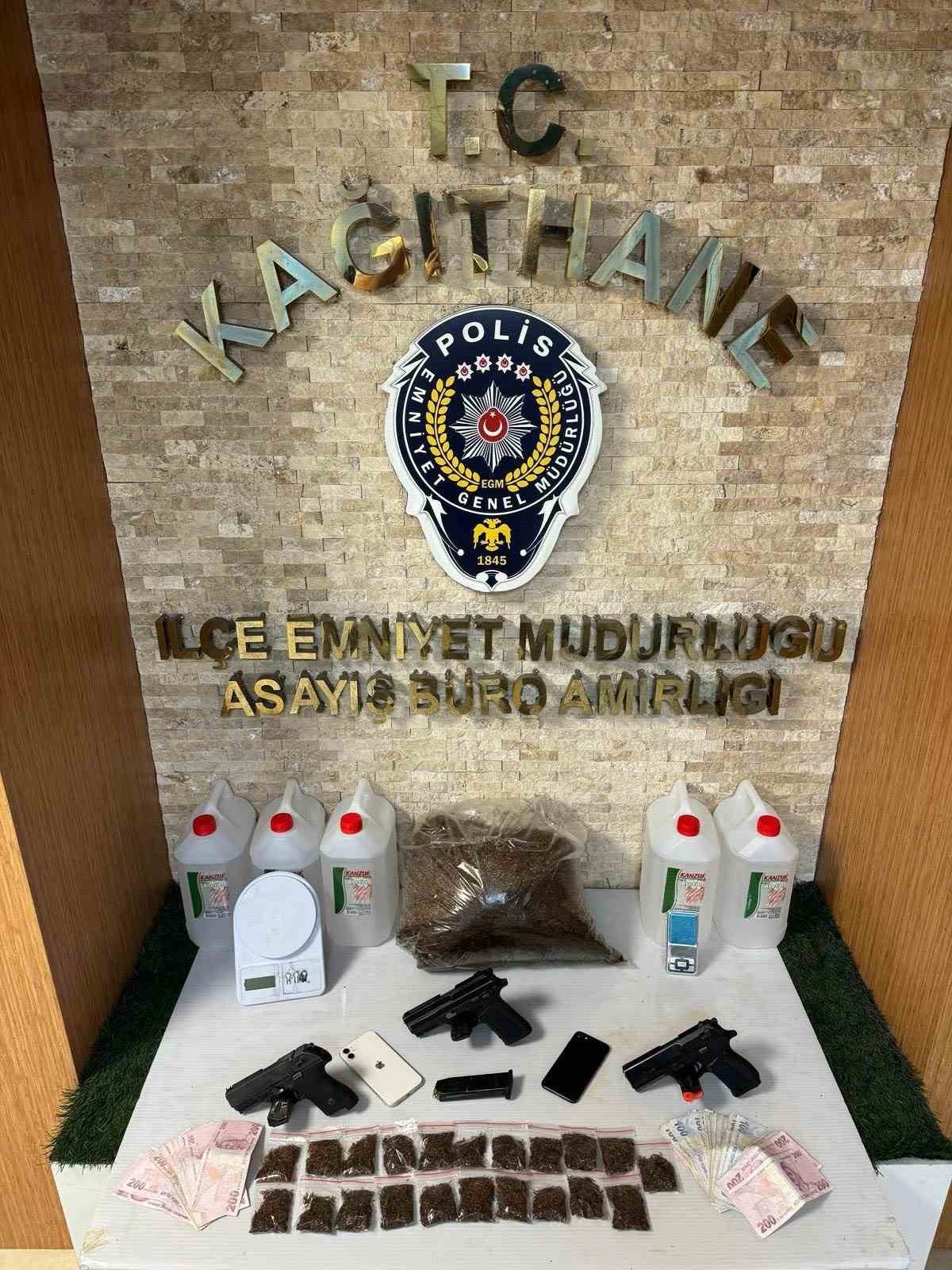 Edinilen bilgiye göre, İstanbul Emniyet Müdürlüğü ekipleri, Kağıthane'de 2 şüphelinin uyuşturucu sattığı ve silah kaçakçılığı yaptığını belirlemesi üzerine çalışma başlattı. Yürütülen teknik ve fiziki çalışmalar sonucunda, şüphelilerin E.S.(18) ve C.Y.(17) olduğu tespit edildi. Öte yandan, suçları çalıntı motosikletle gerçekleştirdikleri anlaşıldı. Adreslerini belirleyen ekipler operasyon için düğmeye bastı. 12 Şubat tarihinde Hamidiye Mahallesi'nde bulunan adrese düzenlenen operasyonda 2 şüpheli yakalanarak gözaltına alındı.