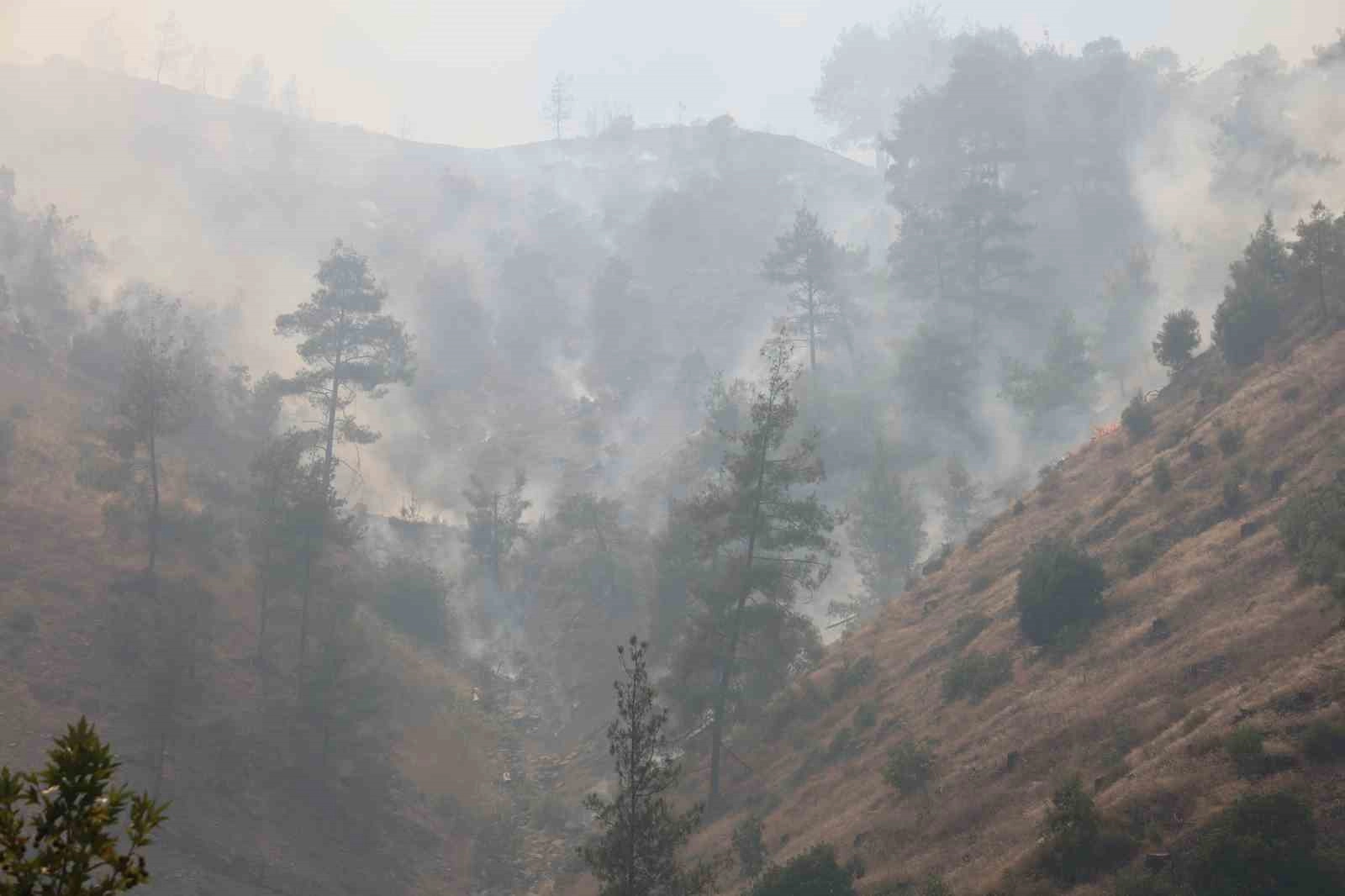 Ormanlık alandaki yangına ekiplerin müdahalesi havadan ve karadan devam ediyor.
