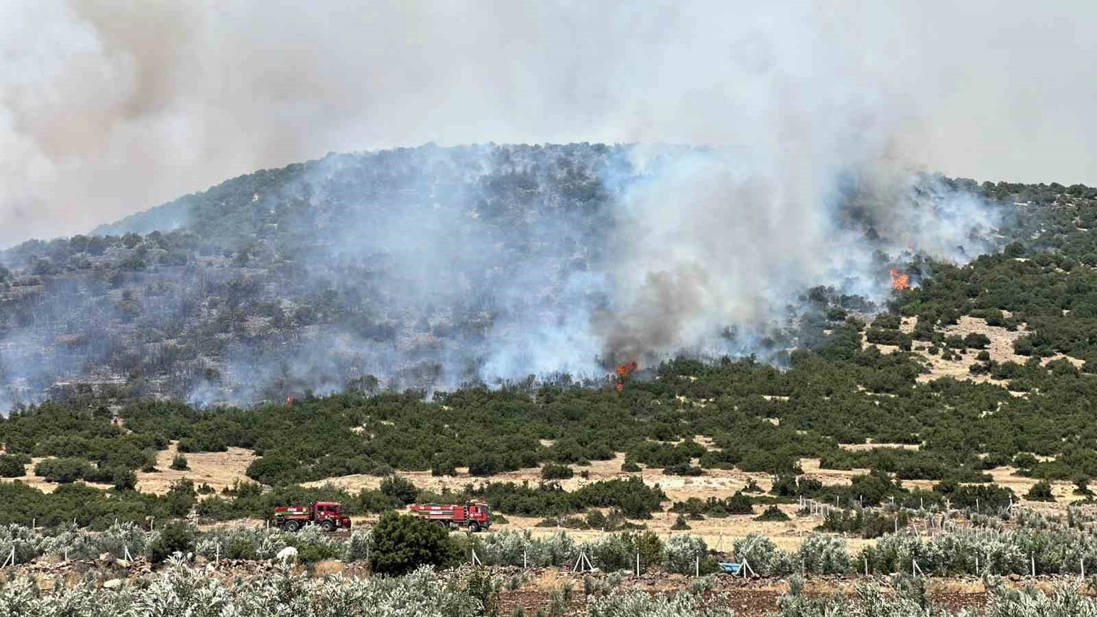 Kahramanmaraş'ın Pazarcık ilçesinde anız yangını makilik alana sıçradı.