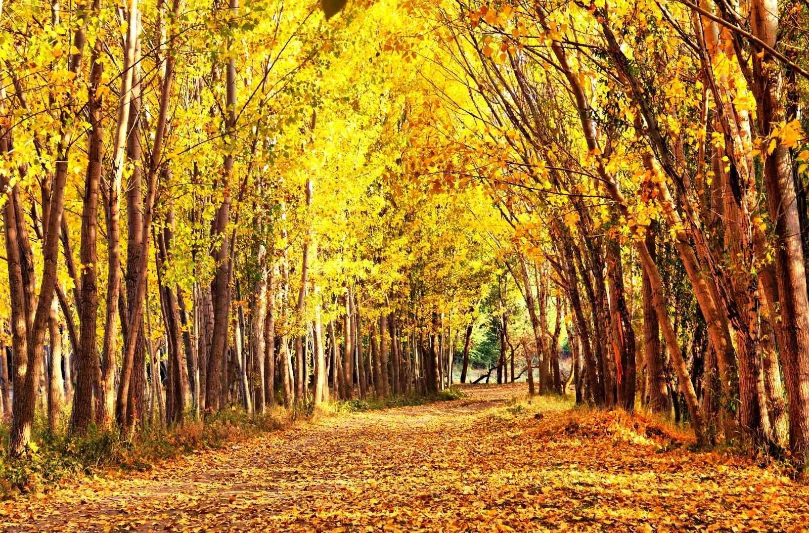 Kahramanmaraş'ta sonbahar mevsiminde sarı ve kırmızıya bürünen ağaçlar, kartpostallık görüntüler oluşturdu.