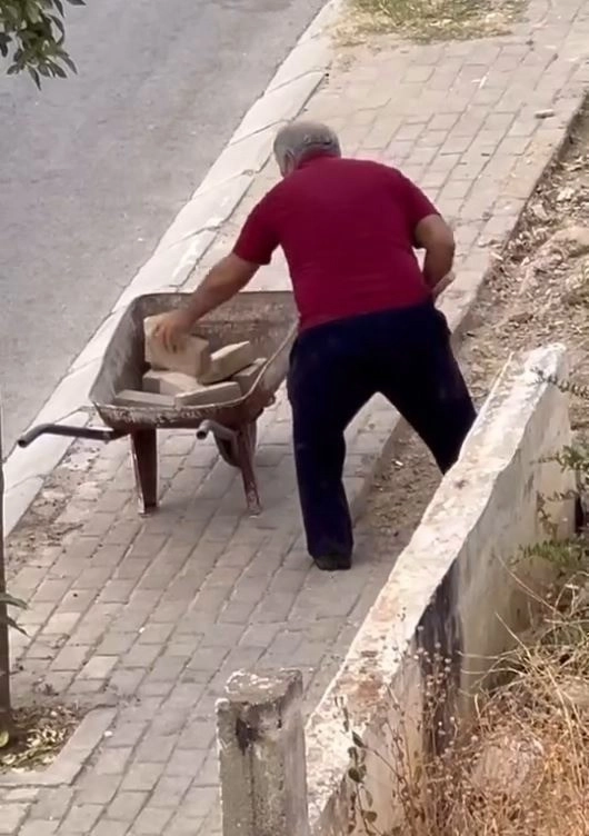 Aydın'ın Efeler ilçesinde kaldırım taşlarını kendi kullanımı için söktüğü tespit edilen şüpheliyi, Efeler Belediyesi ekipleri affetmedi.