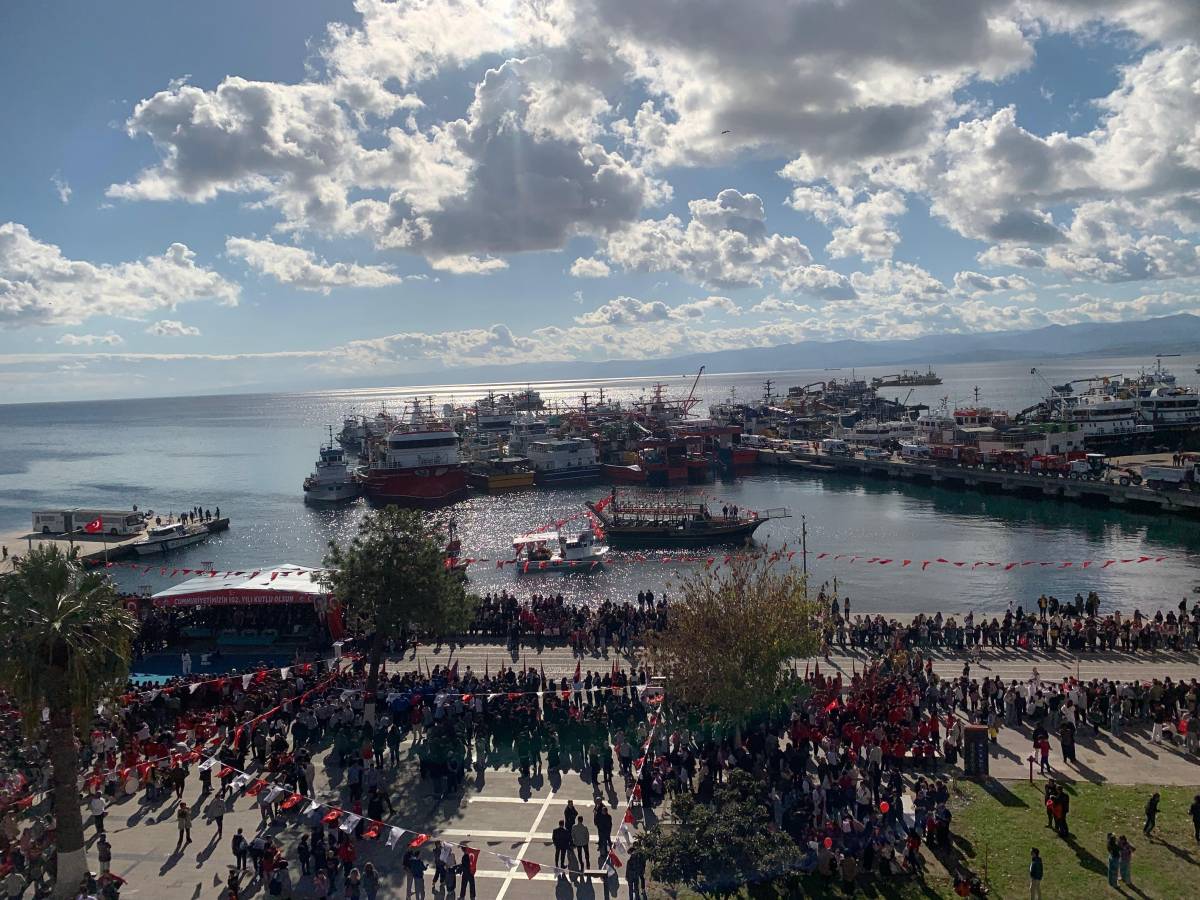 Tören alanı ve liman bölgesi Türk bayraklarıyla süslenirken, denizdeki gemiler de bayraklarla donatıldı.