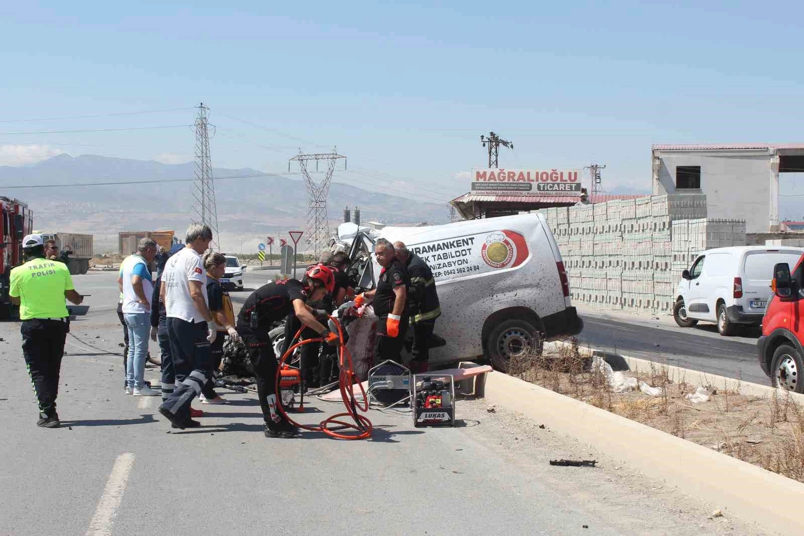 Kahramanmaraş'ta yük taşıyan kamyon ile hafif ticari aracın çarpışması sonucu bir kişi ölürken, kaza anı saniye saniye görüntülendi.