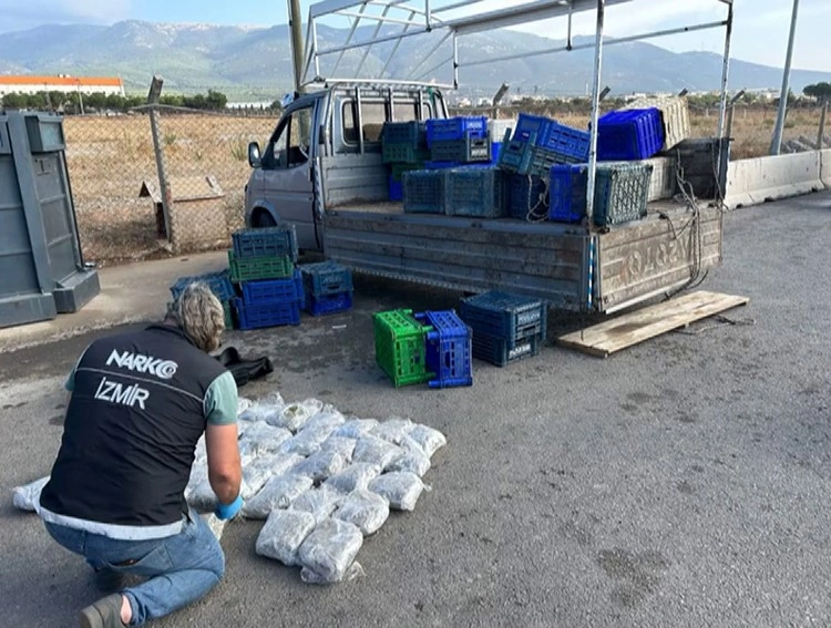 İzmir Narkotik Suçlarla Mücadele Şube Müdürlüğü ekipleri, şehir dışından İzmir'e uyuşturucu madde getirileceği bilgisinin edinilmesi üzerine çalışma başlattı. Plakası belirlenen kamyonet, Kemalpaşa ilçesinde durduruldu. Kamyonetin kasasında narkotik köpeği ile yapıla aramada, plastik kasaların arasına saklanmış bir valiz bulundu. Açılan valizden 21 kilo 550 gram skunk esrar maddesi ele geçirilirken, araç sürücüsü gözaltına alındı.
