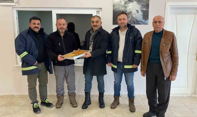 Körfez İlimtepe Mahalllesi'nde karla mücadele çalışmalarına devam eden ekiplere muhtar tarafından baklava ikram edildi.