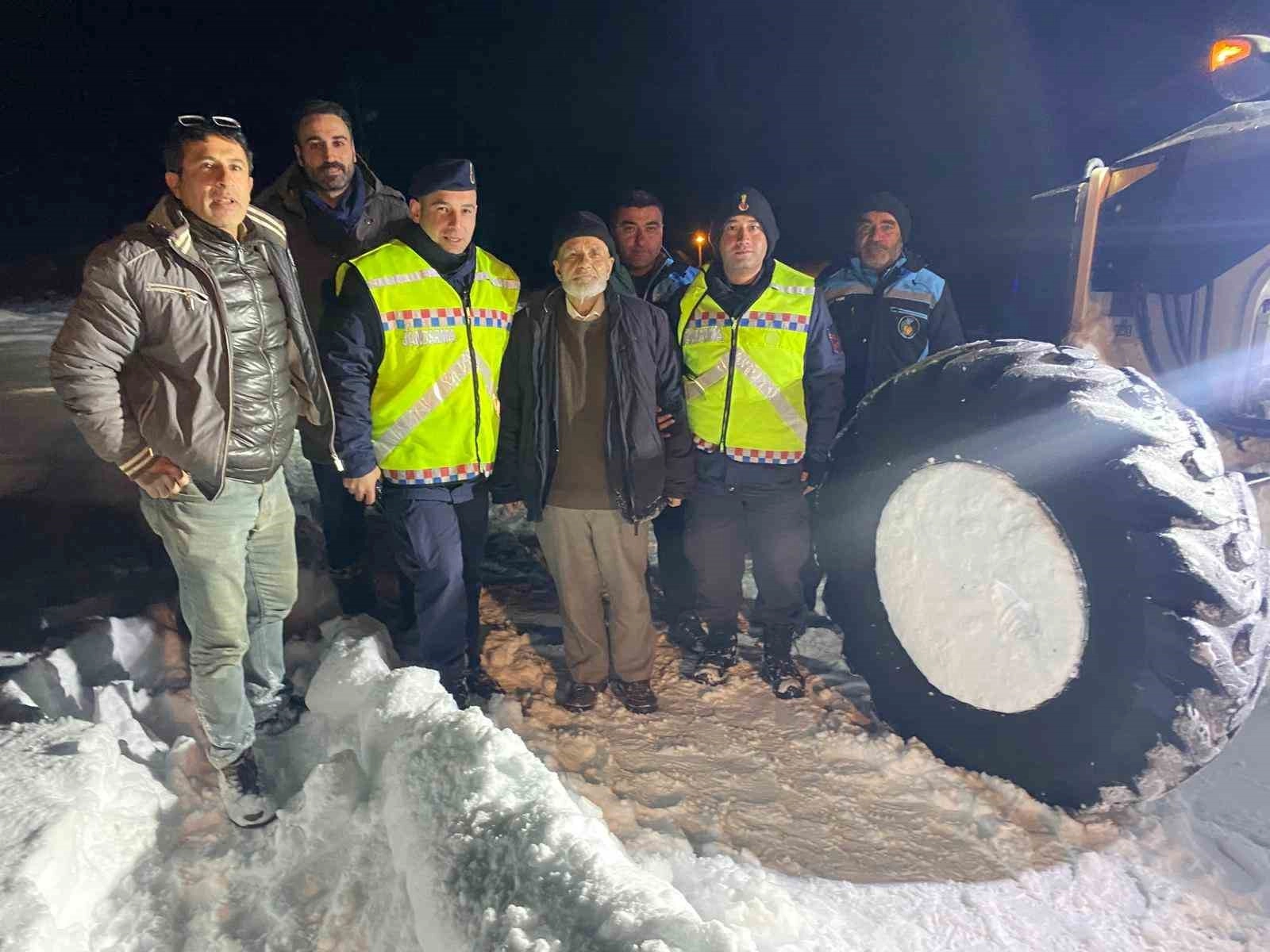 Malatya'da kardan yolların kapanması nedeniyle bulunduğu bölgede mahsur kalan yaşlı adam, Büyükşehir Belediyesi ekiplerinin yolları açması ile kurtarıldı.