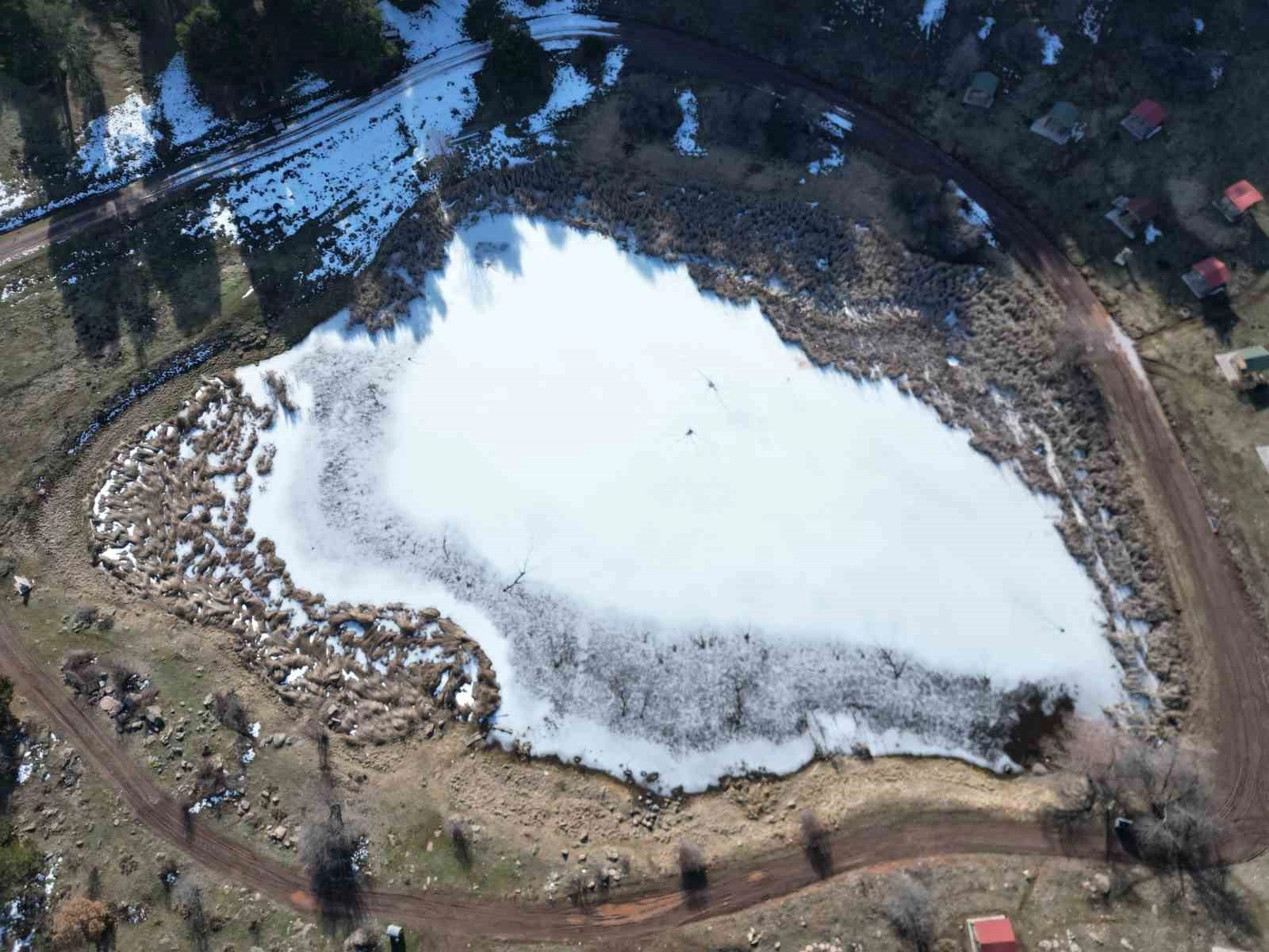 Göl çevresine piknik yapmaya giden Murat Köse, buz tutmuş gölü dron ile görüntüledi. Köse, gölün buz tutmuş olacağını düşünmediklerini ancak buz tutmuş halinin görsel şölen oluşturduğunu belirtti.