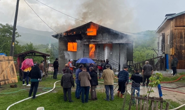 Yangın, ekiplerin yaklaşık 2 saatlik çalışmasıyla evin yakınındaki ahşap eve sıçramadan söndürüldü.