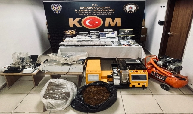 Ekiplerce Kayabaşı Mahallesi'nde imalathane olarak kullanıldığı tespit edilen evde yapılan operasyonda, biri sanayi tipi olmak üzere 3 tütün sarma makinesi, sanayi tipi sigara paketleme makinesi, kompresör, 20 kilogram kıyılmış tütün, 33 paket bandrollü tütün, 12 bin 300 makaron (filtreli sigara kağıdı) ele geçirildi.