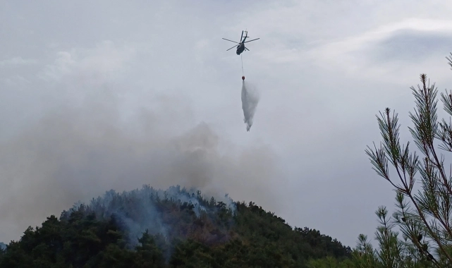 Açıklamada, yangına Orman İşletme Müdürlüğüne ait 7 arazöz, 3 su tankeri, dozer, ilk müdahale aracı, 7 hizmet aracı, 65 personel ve helikopter ile müdahale edildiği belirtildi.