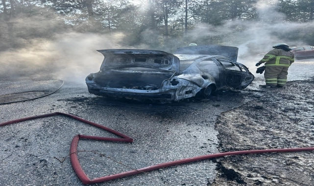 Yangın itfaiyenin müdahalesiyle söndürülürken otomobil kullanılamaz hale geldi.