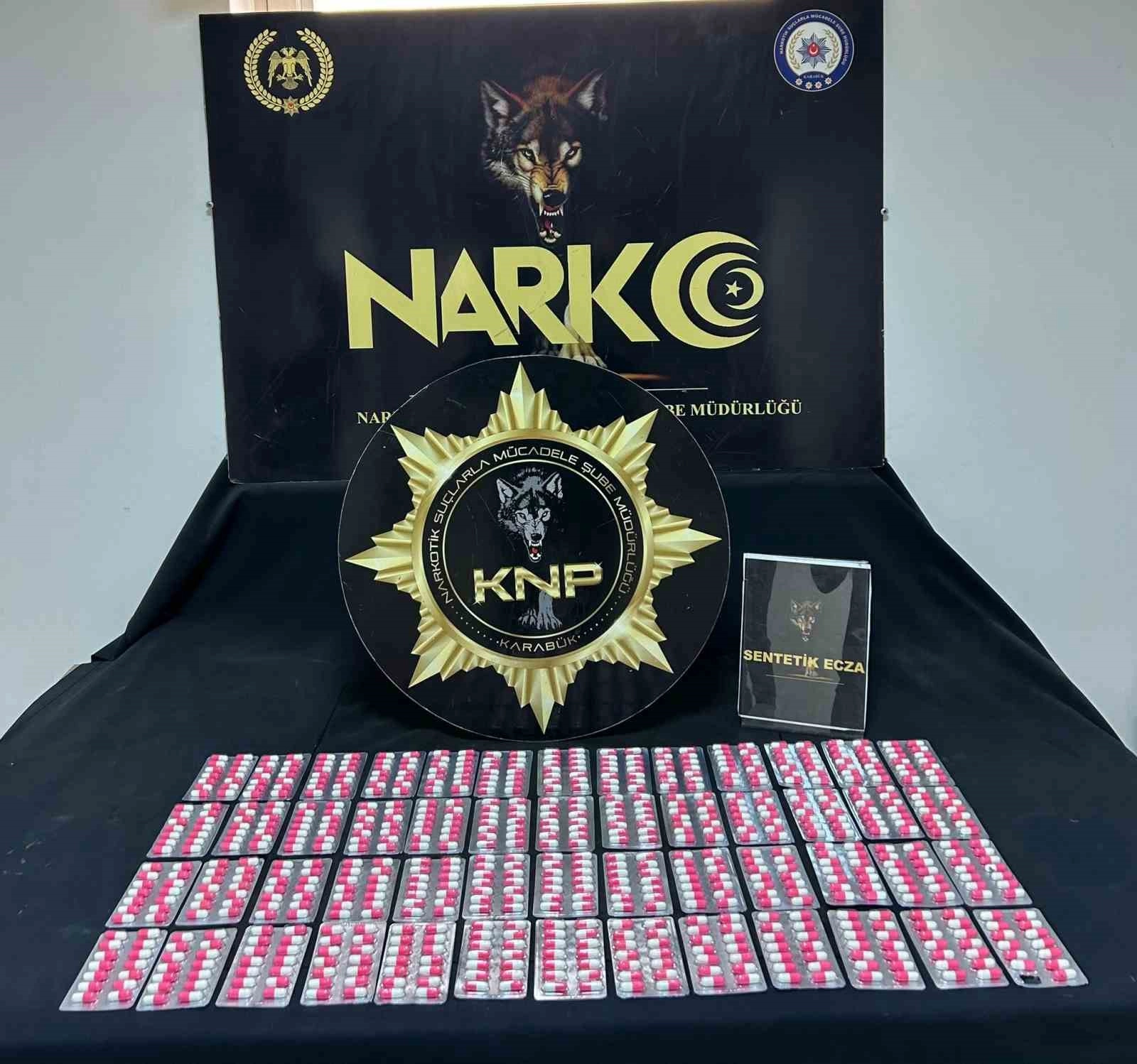 Karabük'te yapılan uyuşturucu operasyonunda bir kişi gözaltına alınırken, 727 adet ecza hap ele geçirildi.
