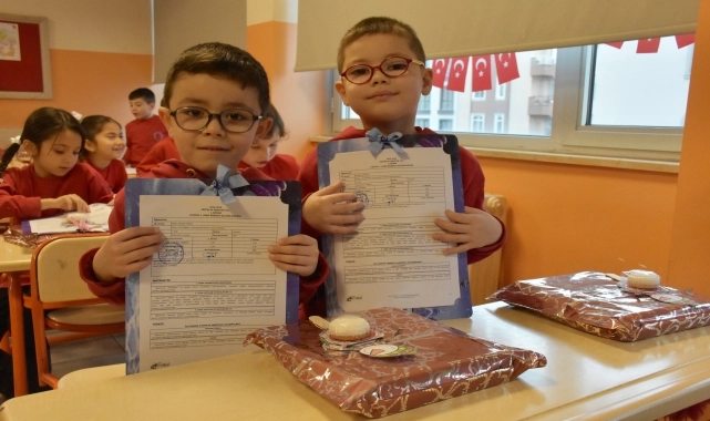 Coşkun, karne ve hediyelerini verdiği öğrencilere iyi tatiller dileğinde bulundu.