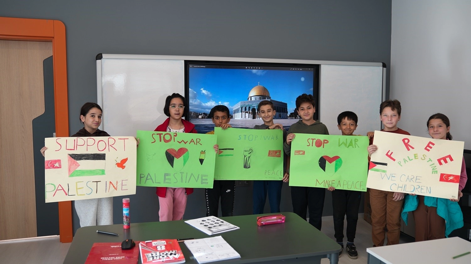 Karatay Kültür ve Sanat Akademisi, İsrail'in saldırılarından zarar gören Filistinlilere destek olmak amacıyla anlamlı bir etkinlik düzenledi. Akademinin 11 farklı atölyesinde eğitim alan minik yürekler; Filistin konulu şiirler ve ezgiler okudu, tiyatro gösterisi gerçekleştirdi, resim ve daha birçok etkinlik yaptı.