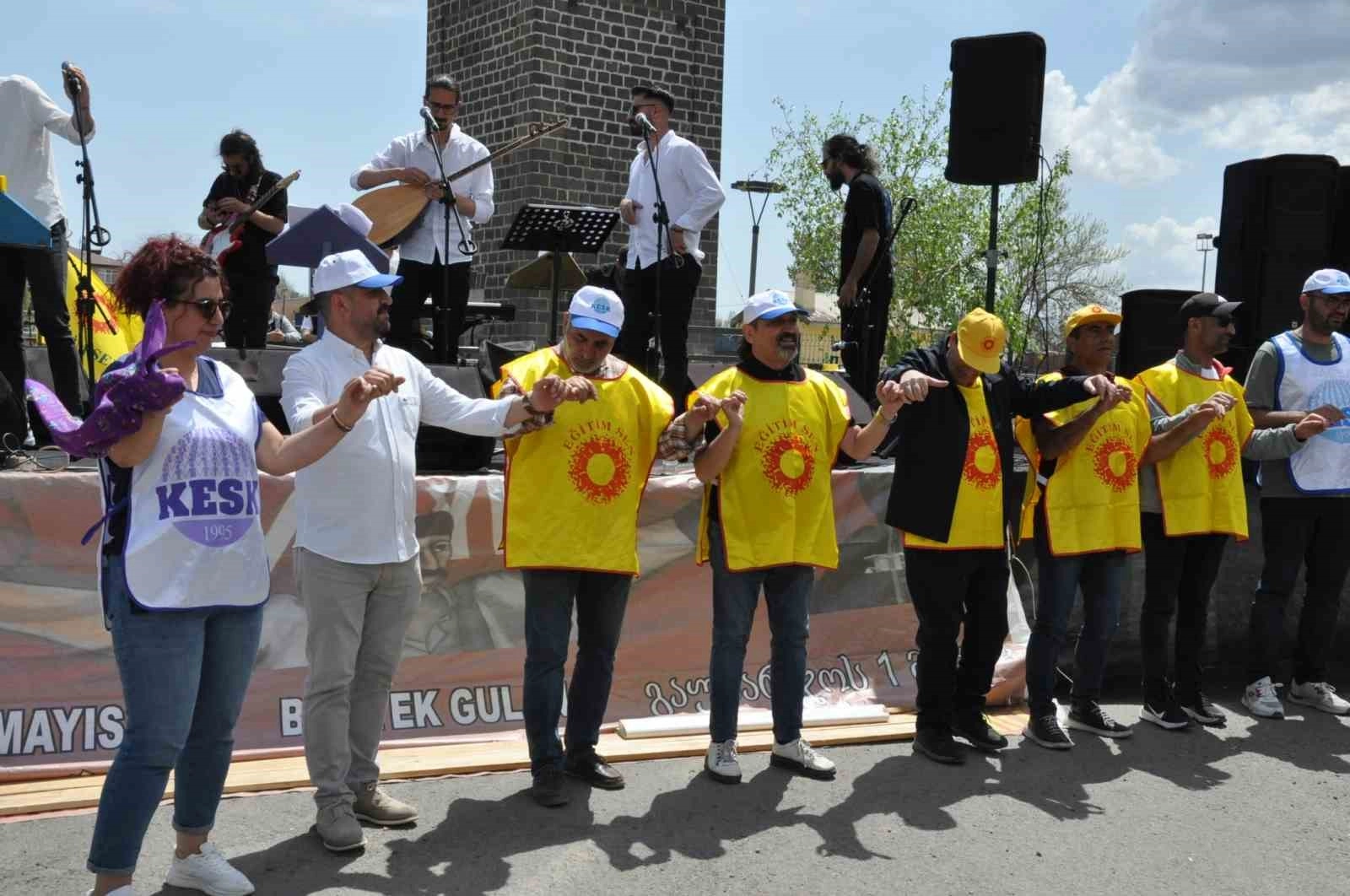 Kars'ta 1 Mayıs İşçi Bayramı, davullu zurnalı halaylarla kutlandı.