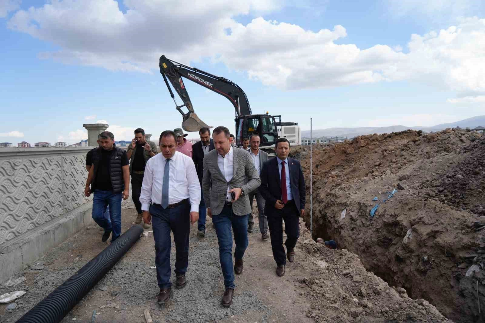 Şehitler Mahallesi'nde yerleşime açılan bölgelerde yürütülen kanalizasyon ve su şebeke çalışmalarında çalışanlarla da bir araya gelen Başkan Senger, çalışanlara kolaylıklar diledi.