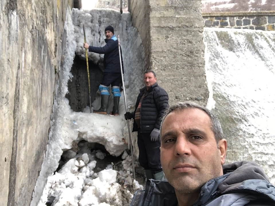 Öte yandan, Kars'ın yaklaşık 10 kilometre dışında bulunun Hidro Elektrik Santralı (HES) çalışanları güneşli hava ile birlikte santrale su akışı sağlayan kanalının buzlarını kırdı. Soğuk havanın etkisiyle donan kanalın buzları tamamen kırılarak temizlendi.