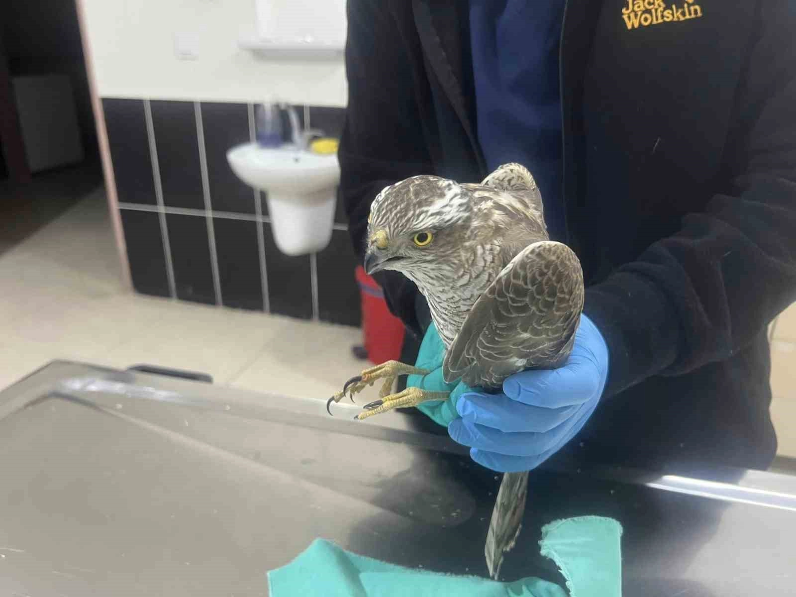 Kars'ta vatandaşlar tarafından bulunan ve güçten düşen Atmaca tedavi altına alındı.