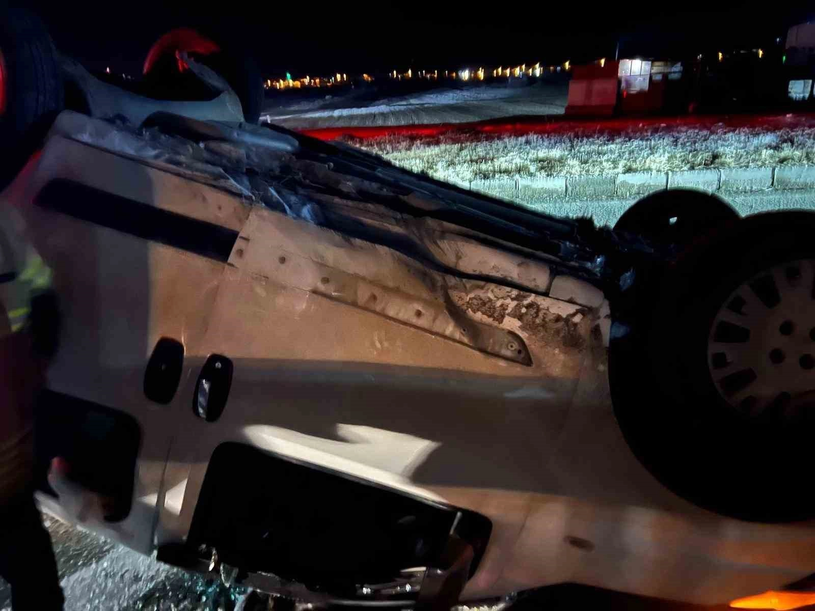 Kars'ta meydan gelen trafik kazasında bir araç çarpmanın şiddetiyle ters dönerken, feci kazada 1'i ağır, 3 kişide yaralandı.