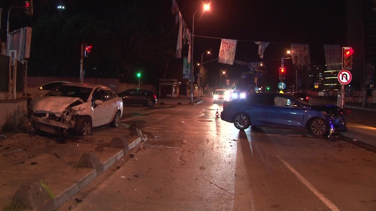 Kartal'da kırmızı ışıkta geçen otomobil, karşı yönden gelen başka bir araca çarptı. Maddi hasarla atlatılan kazada araçlar kullanılamaz hale geldi.